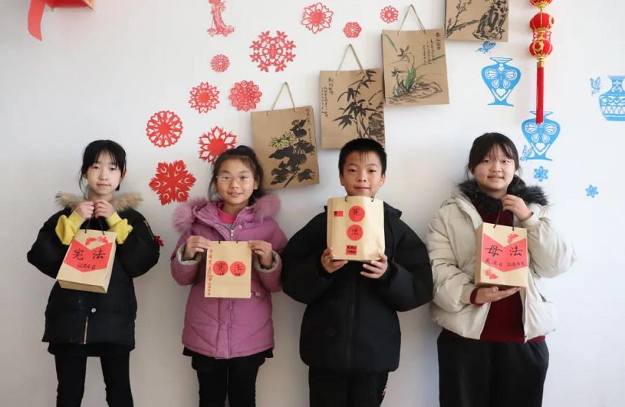 教学生动手制作宪法主题环保手提袋