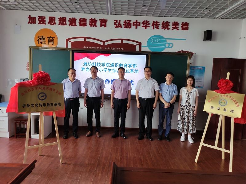6月23日,潍坊科技学院通识教育学部与寿光市中小学生综合实践基地战略合作签约暨揭牌仪式在寿光市中小学生综合实践基地举行。