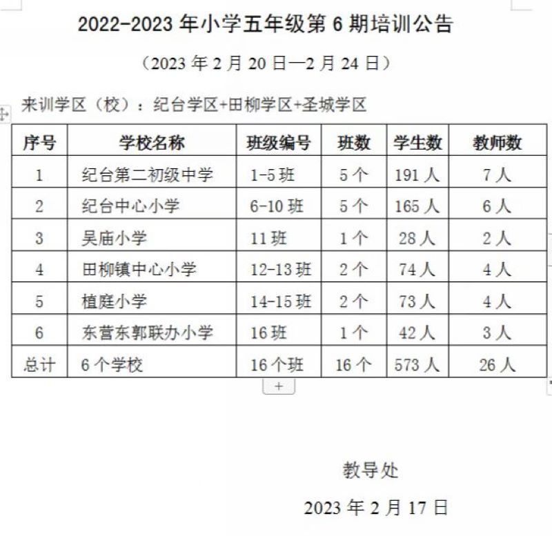 2022-2023学年小学五年级第6期培训公告
