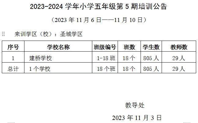2023-2024学年小学五年级第5期培训公告
