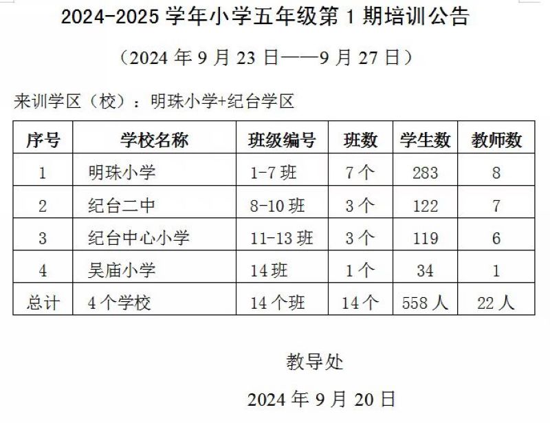 2024-2025学年小学五年级第1期培训公告