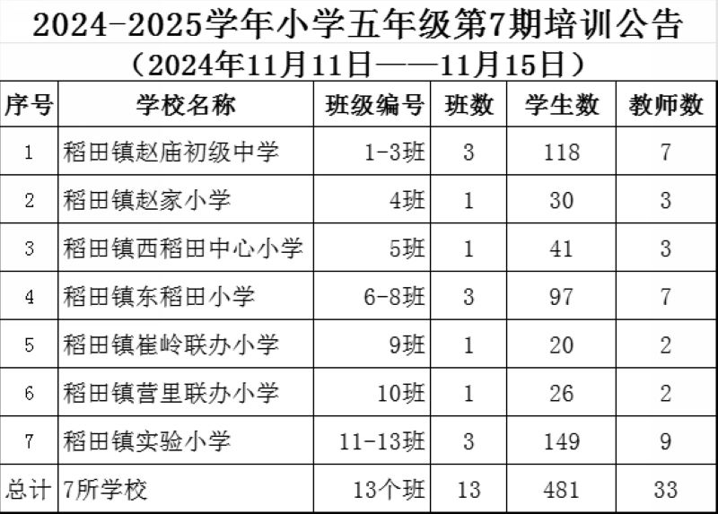 2024-2025学年小学五年级第7期培训公告