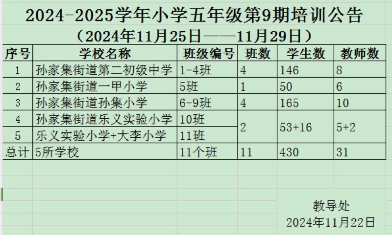 2024-2025学年小学五年级第9期培训公告