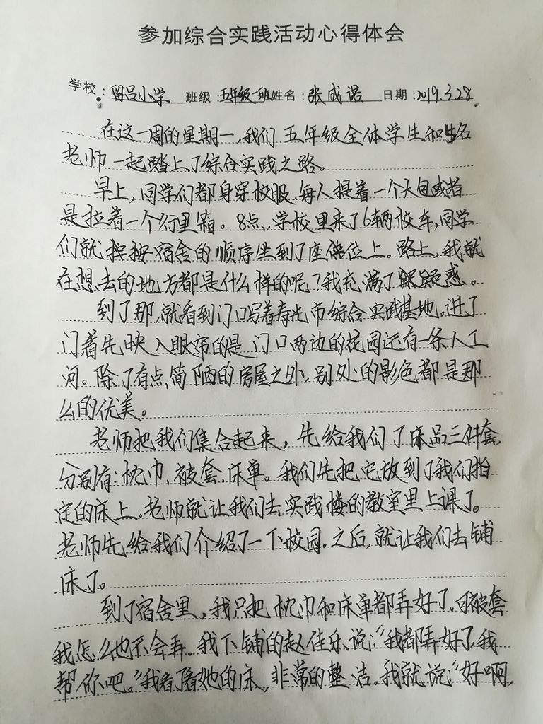 留吕小学张成诺实践活动感言