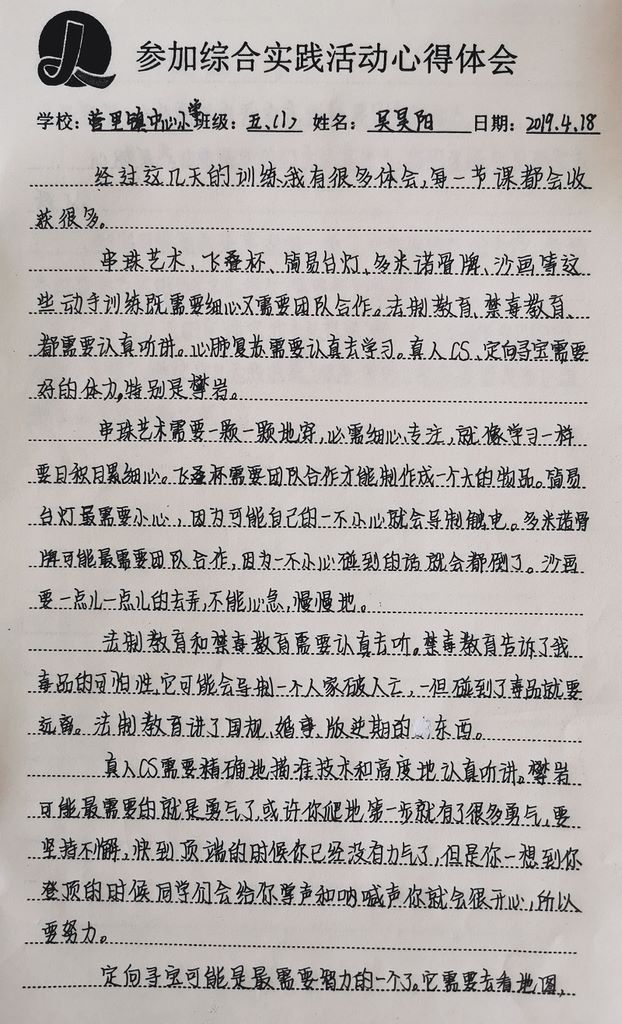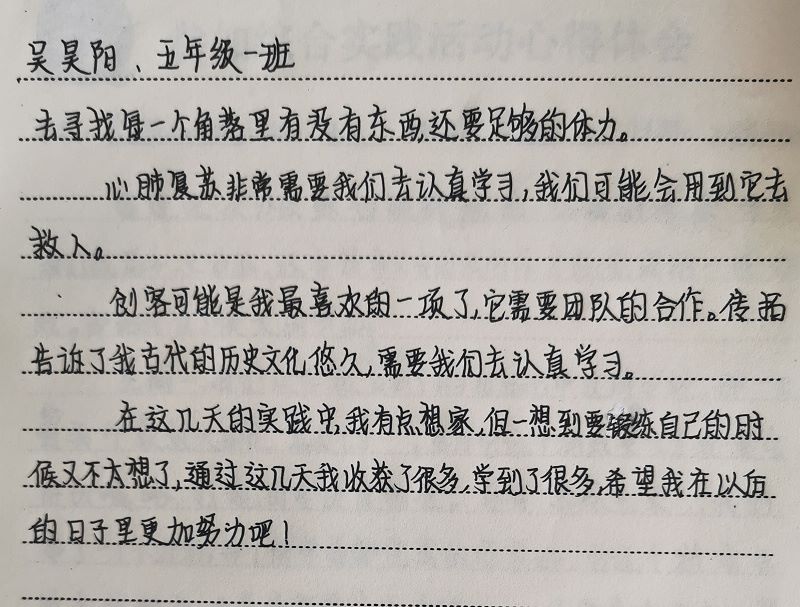 营里中心小学吴昊阳实践活动感言