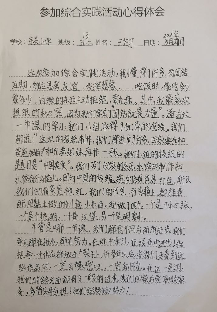 东关小学王芷汀心得体会