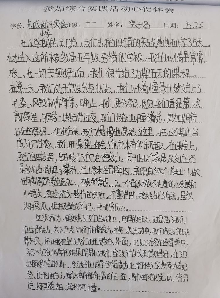 东城新区实验小学徐子涵心得体会