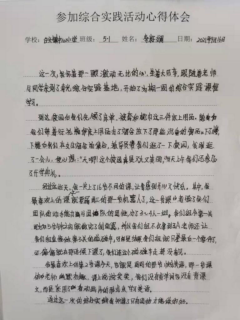台头中心小学李籽娴心得体会