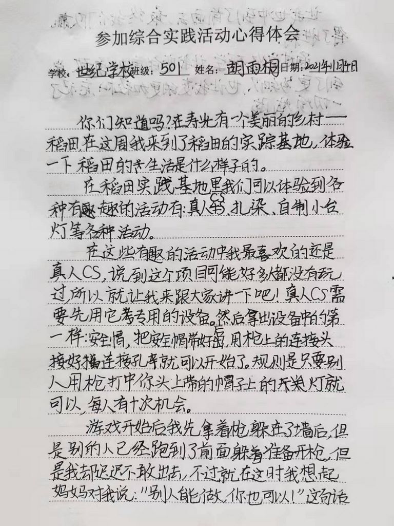 世纪学校胡雨桐活动感言