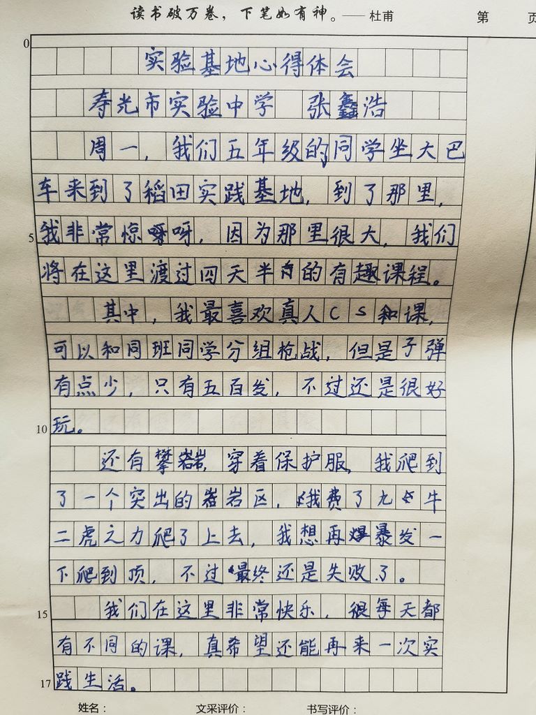 实验中学张鑫浩心得体会
