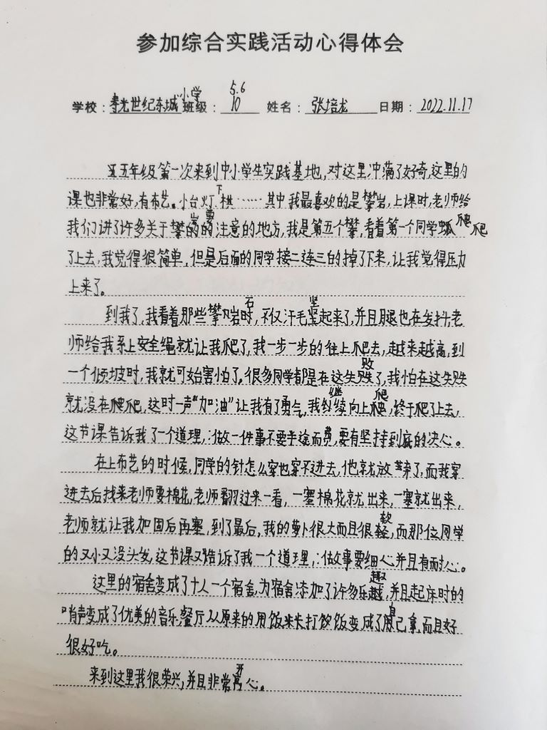 世纪东城小学张培龙活动感言