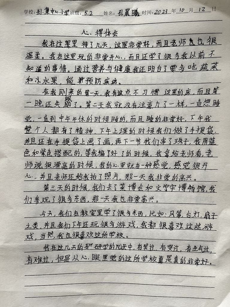 营里二中单熙妍心得体会
