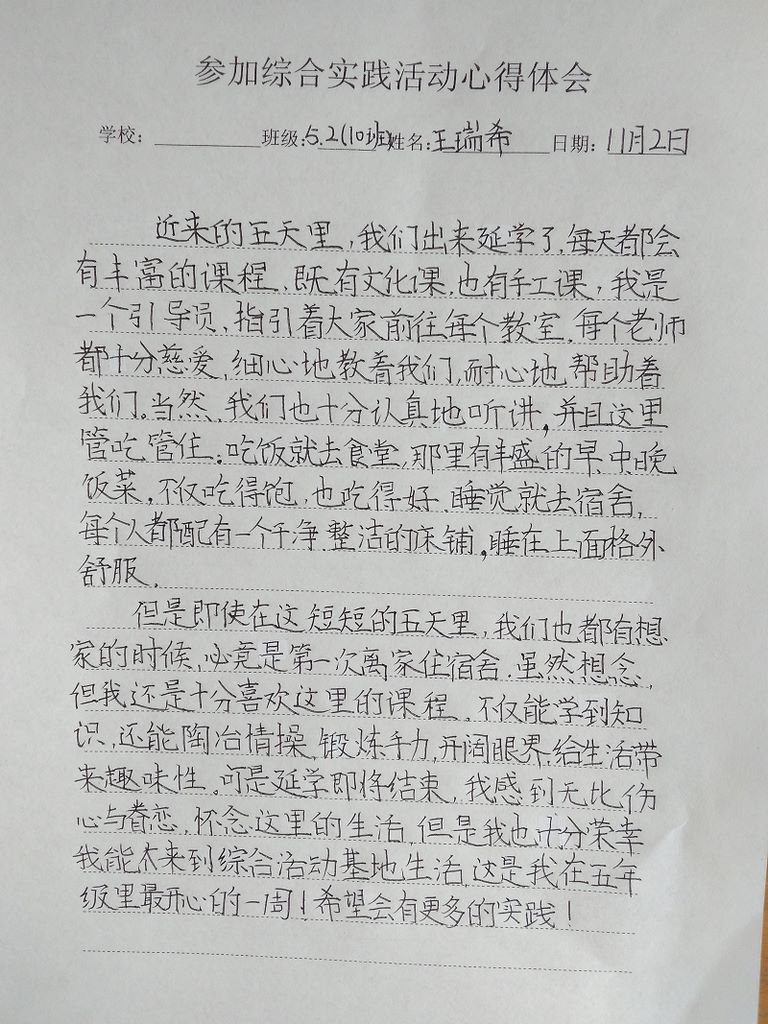 建桥学院路校区王瑞希心得体会