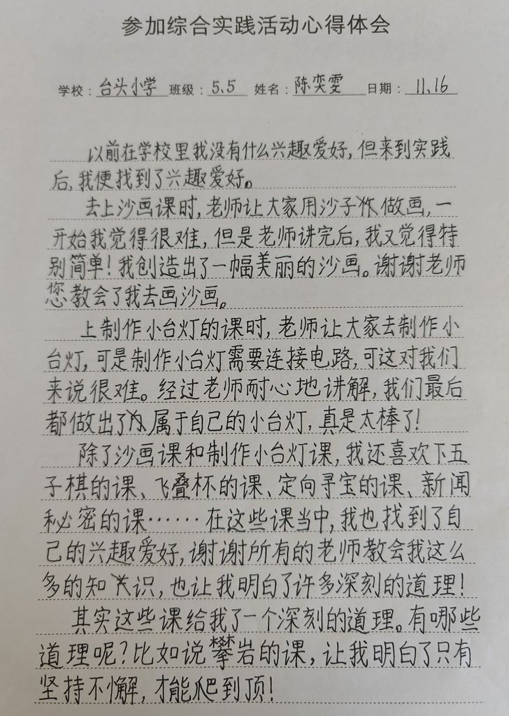台头小学陈奕雯心得体会