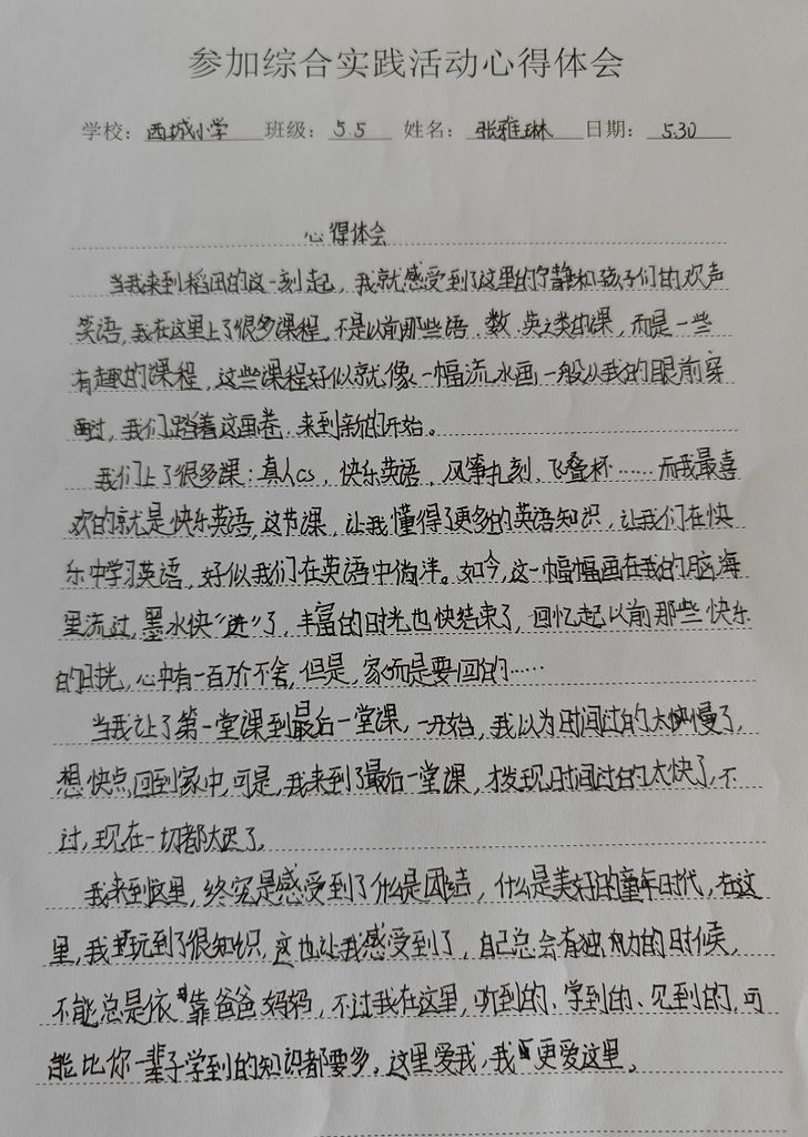 西城小学张雅琳心得体会