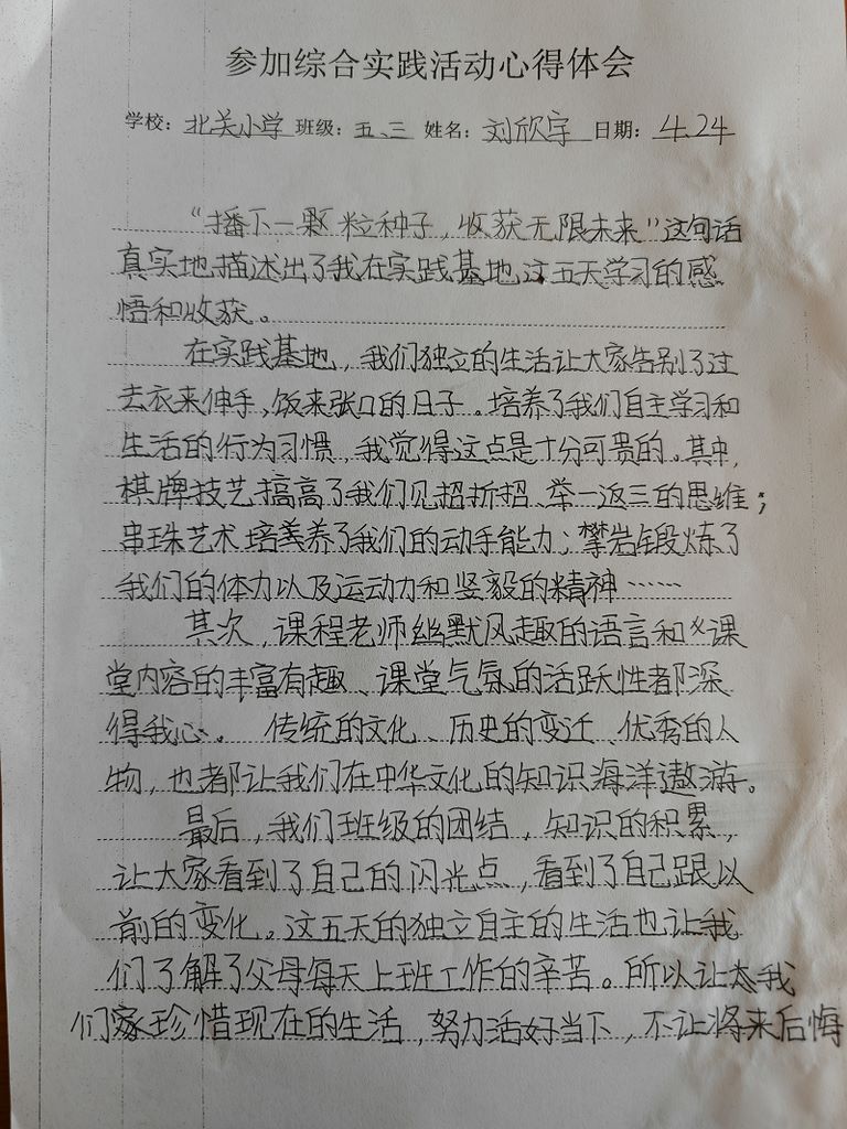 北关小学刘欣宇心得体会